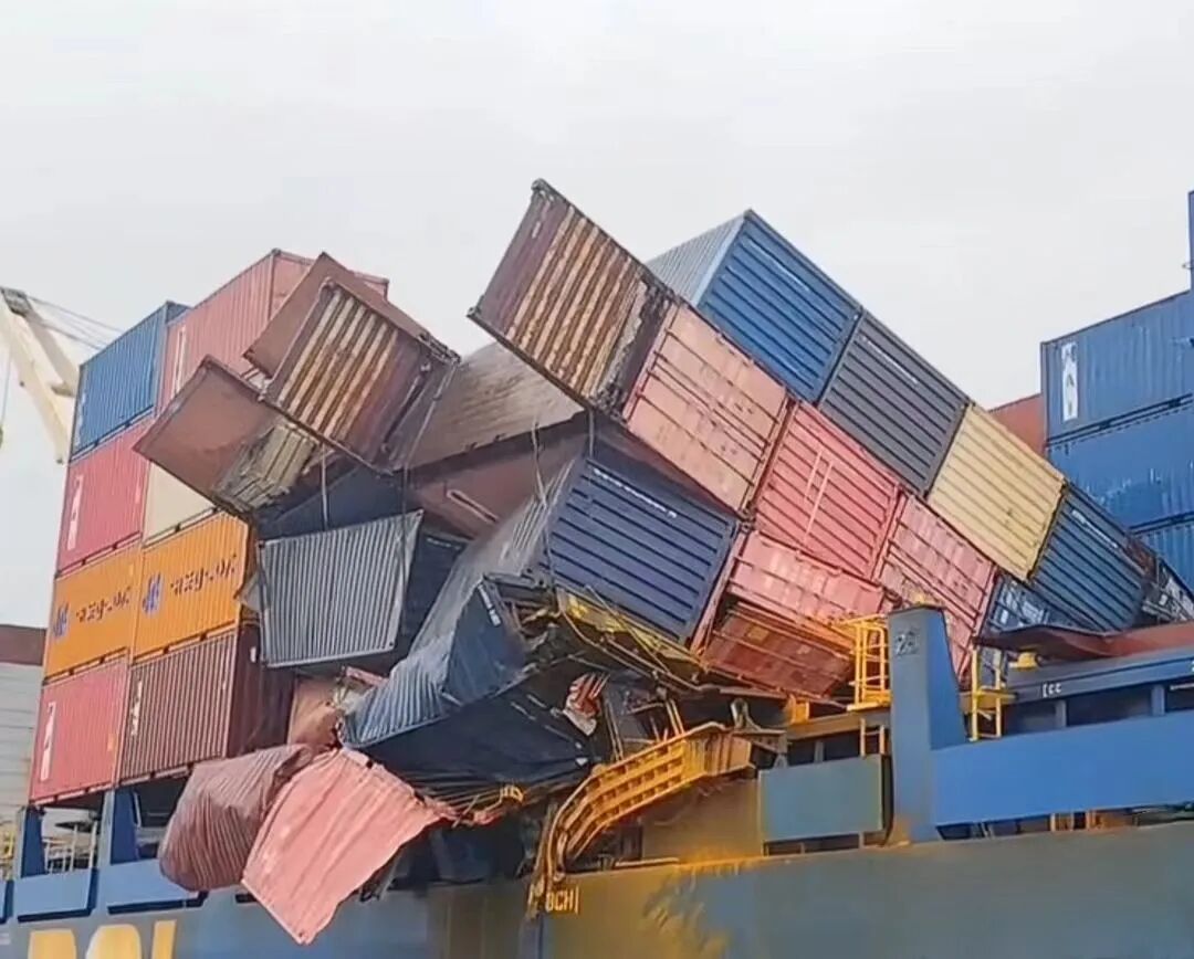 事故!堆垛倒塌大量集装箱受损或坠海,事发欧洲