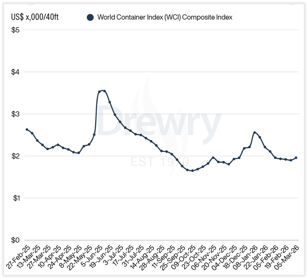 在市场层面,风险上升也已开始传导至成本与价格。受航线调整、保险成本上升、燃油价格波动及附加费增加等因素影响,集装箱运价在过去一周出现反弹。